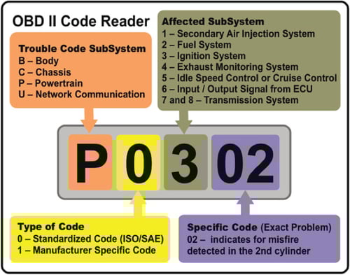 ค่าที่อ่านได้จากพอร์ต OBDII จะเป็นโค้ดสี่หลัก