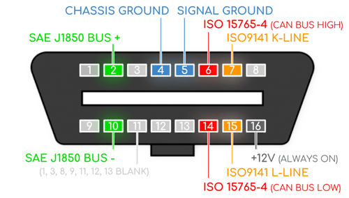 ตำแหน่ง PIN ของปลั๊ก OBDII
