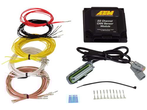 AEM 22 Channel CAN Sensor Module ออกแบบมาสำหรับแปลงสัญญาณ อุณหภูมิ, แรงดัน, ระดับน้ำมันเชื้อเพลิง, และ รอบเครื่อง ให้ช่วยร่วมกับหน้าจอ CD-5/ CD-7 ได้ เหมาะสำหรับผู้ที่ต้องการวัดค่าต่างๆจากกล่อง ECU รถเดิมหรือกล่อง Standalone สัญญาณ CAN