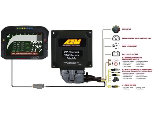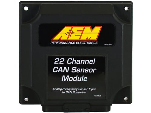 AEM 22 Channel CAN Sensor Module ออกแบบมาสำหรับแปลงสัญญาณ อุณหภูมิ, แรงดัน, ระดับน้ำมันเชื้อเพลิง, และ รอบเครื่อง ให้ช่วยร่วมกับหน้าจอ CD-5/ CD-7 ได้ เหมาะสำหรับผู้ที่ต้องการวัดค่าต่างๆจากกล่อง ECU รถเดิมหรือกล่อง Standalone สัญญาณ CAN