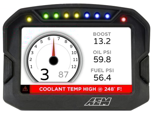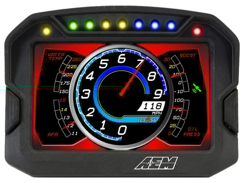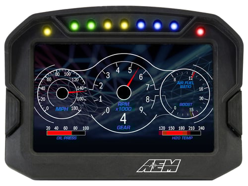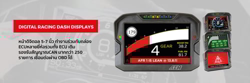 หน้าจอ AEM CD-5 Carbon Digital Dash ขนาด5" รุ่นมี Logging ความจุ 200Mb ในตัว อ่านค่ามากกว่า 250 รายการจาก CAN Bus และพ่วงกับกล่อง ECU แต่งรุ่นอื่นๆได้ หรือ OBDII รถเดิมได้