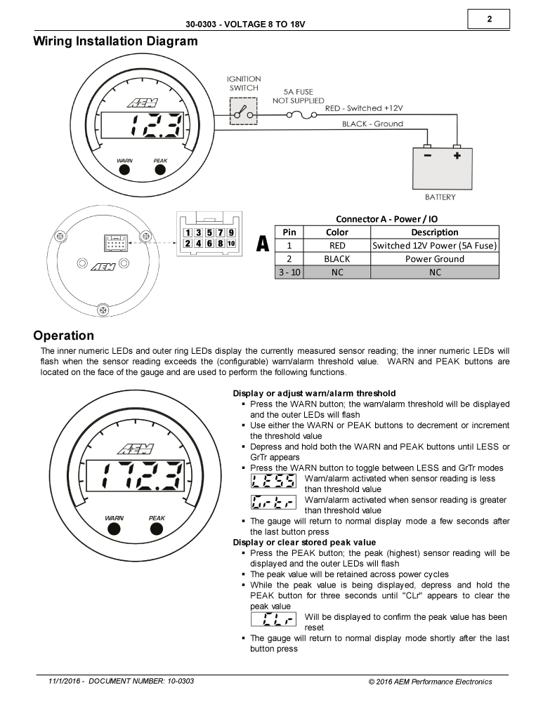 AEM’s 30-0303 X-Series Digital Voltmeter gauge combines incredible looks, increased readability and a multitude of new, easy-to-use features! It is a must for users who want highly a accurate voltage readout in their high performance vehicle.