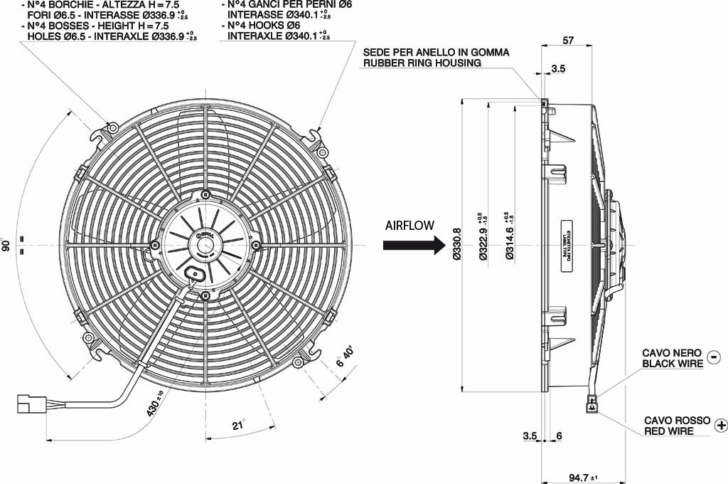 พัดลมหม้อน้ำ SPAL 24V VA34-BP70/LL-36A ขนาด 12"