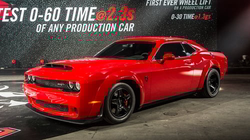 หลังจากมีการโฆษณาไปบ้างกันพอสมควร วันนี้ขอนำเสนอรถ Dodge Challenger SRT 2018 มาพร้อมกับขุมพลัง 840 แรงม้า แรงบิด 770 lb-ft หรือ 1044 Nm ใช้ระยะเวลาเร่ง 0-100 เพียง 2.3 วินาทีเท่านั้น